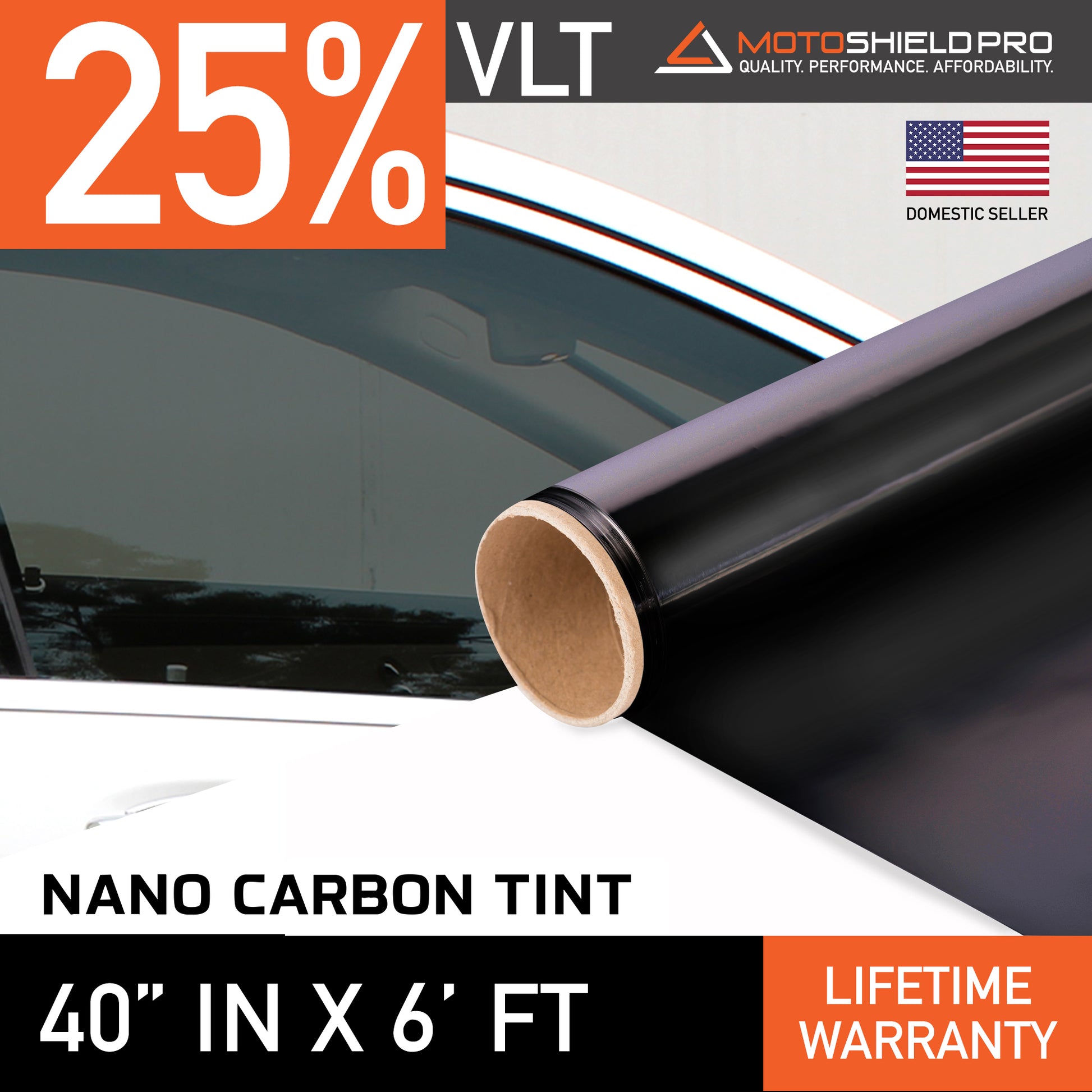 MotoShield Pro Nano Carbon Window Tint - 40" in x 6' ft Roll + Lifetime Warranty